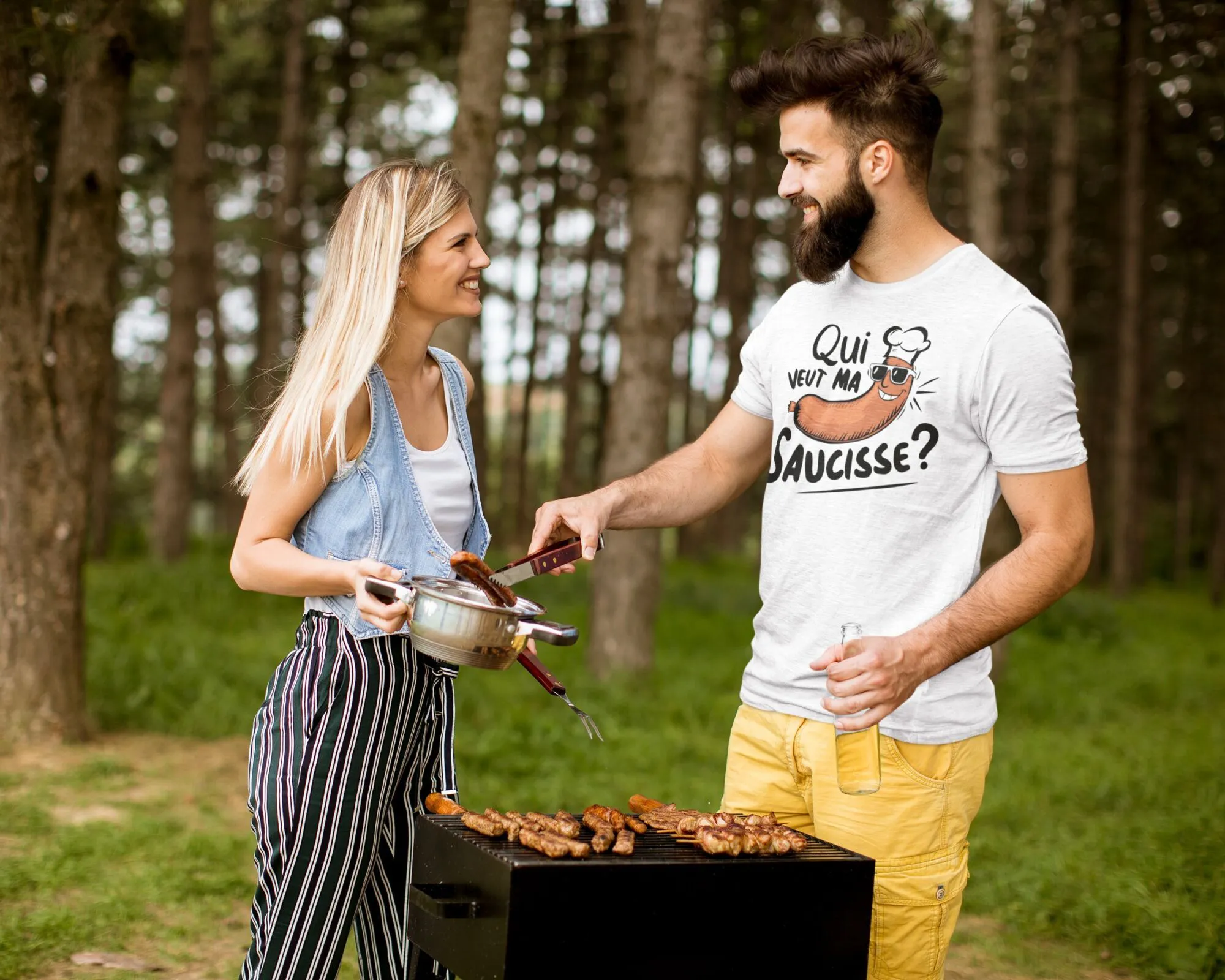 Un must-have pour les rois du grill, ce t-shirt « Qui veut ma saucisse » est l’atout charme de vos barbecues estivaux. Avec son design amusant et sa pointe d’audace, il incarne la joie de partager des moments conviviaux. À enfiler pour manier la spatule ou savourer une bière fraîche, il s’adresse à l’homme qui aime l’humour et la bonne chair. Un clin d’œil gourmand qui ne manquera pas de susciter sourires et appétit chez vos convives!