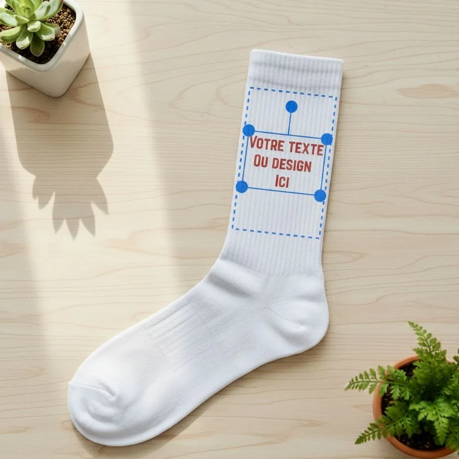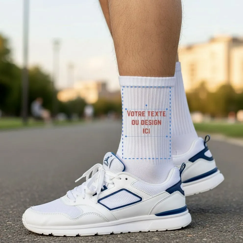 Zone d’impression : 7 × 11 cm sur chaque chaussette